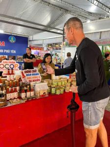 Gia vị bếp Út và Đặc sản Phú Yên tại gian hàng 81 – 84. Mặc dù thời tiết mưa dầm cả ngày nhưng vẫn thu hút khách tham quan và dừng chân tại gian hàng Phú Yên. Đặc biệt có rất nhiều du khách Quốc Tế.